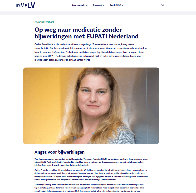 Over time I took interest in all different aspects of medication. As a receiver of a donor kidney, you must take a daily amount of prescribed medication to live. But over the years side effects became more and more of a challenge. And it comes with a question mark; sometimes people deal with major side effects. Side effects can be worse than the disease itself. And even less severe side effects can still be a burden in everyday life. So what can we as patients do about it?